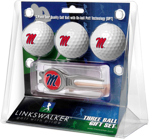 Mississippi Rebels - Ole Miss - 3 Ball Gift Pack with Hat Trick Divot Tool
